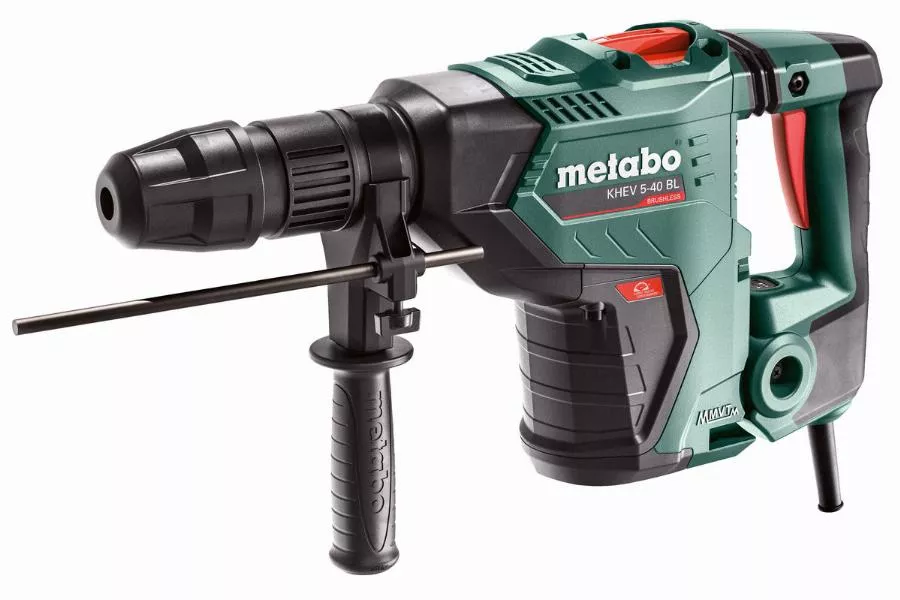Avance de perçage maximale et capacité de démolition élevéegrâce au moteur Brushless qui ne nécessite aucun entretien etau mécanisme de frappe haute performanceLongévité élevée grâce à la technologie Brushless et aux cartersdu réducteur et du moteur robustes en fonte d’aluminiummoulée sous pressionMarteau combiné avec 2 fonctions : perçage à percussion etburinageMetabo VibraTech (MVT) avec double amortissement : la poignéeisolée et la masse d’équilibrage réduisent activement lesvibrations pour permettre à l’utilisateur de travailler en continusans mettre en danger sa santé.Zone de préhension ergonomique et fine avec une grand accélérateurde vitesse pour travailler confortablementBouton de blocage facile à atteindre pour buriner en continuSystème électronique à ondes pleines Vario-Tacho-Constamatic(VTC) pour travailler avec des vitesses adaptées auxmatériaux et qui restent constantes en chargeRéduction optimale de la vitesse de rotation et de l’énergie de frappe pour travailler avec des matériaux tendresDémarrage électronique progressif pour une amorce de perçage préciseDébrayage de sécurité Metabo S-automatic : débrayage automatique de l’entraînement en cas de blocage du foret pour travailler en toute sécuritéProtection anti-redémarrage : empêche tout démarrage involontaire après une coupure de courant Protection contre la surcharge : protège le moteur contre la surchauffeBurinage et perçage sans poussière grâce au système externe d’aspiration de la poussière ESA max (accessoire)Énergie de frappe max. par coup (EPTA) 8,7 JCadence de frappe max. 2.900 /minPuissance absorbée nominale 1.150 WØ de perçage dans le béton avec forets marteaux 40 mmØ de perçage dans la maçonnerie avec couronnes de perçage 105 mmVitesse de rotation à vide 350 / 500 /minVitesse de rotation en charge nominale 350 / 500 /minPorte-outil SDS-maxDiamètre du collier de serrage 64,6 mmPoids sans câble 8,3 kgLongueur de câble 6 mLivré en coffret avec Poignée caoutchoutée supplémentaire, Butée de profondeur de perçage, Graisse spéciale pour les emmanchements d’outil, Chiffon de nettoyage